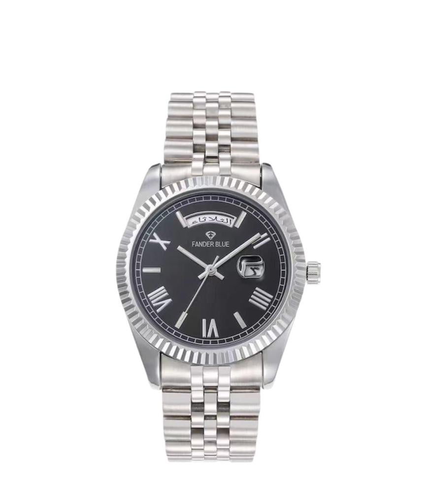 * ساعة رجالية بسير من الستيل باللون الاسود